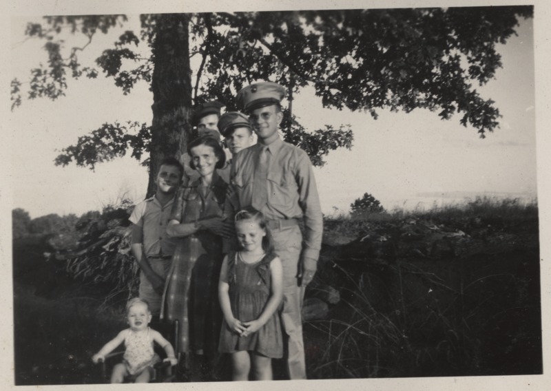 Alton Cadenhead in uniform with his mother and siblings, 1943