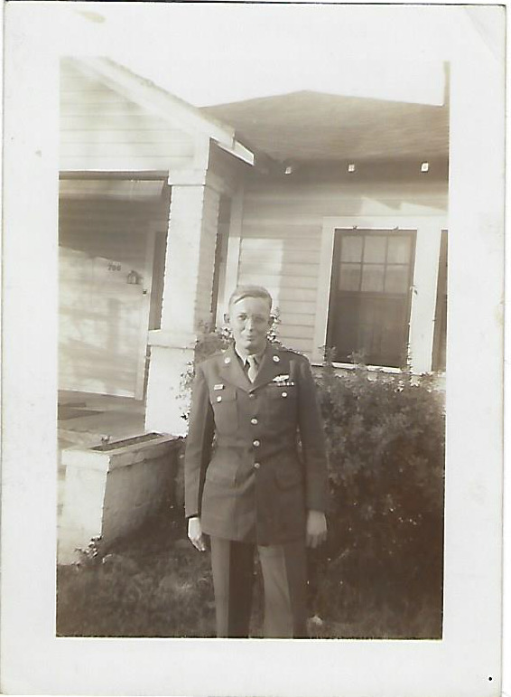 Wallace is standing in front of his house in Millen, Georgia, in his Air Force uniform, after he had reenlisted.